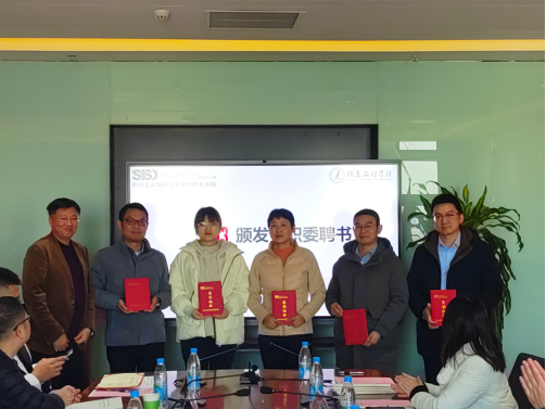 会上,刘正强调了专业建设指导委员会在专业建设上的重要性,希望各位专家积极献策,持续加强深化校企合作,建立常态化互动交流机制,利用先进的技术及资源优势,在专业发展、产学合作、技术创新等方面与学院协同育人,助力高技能人才培养。之后,刘正和张勇给与会专家颁发专业建设指导委员会聘书。