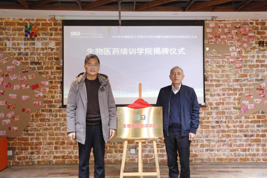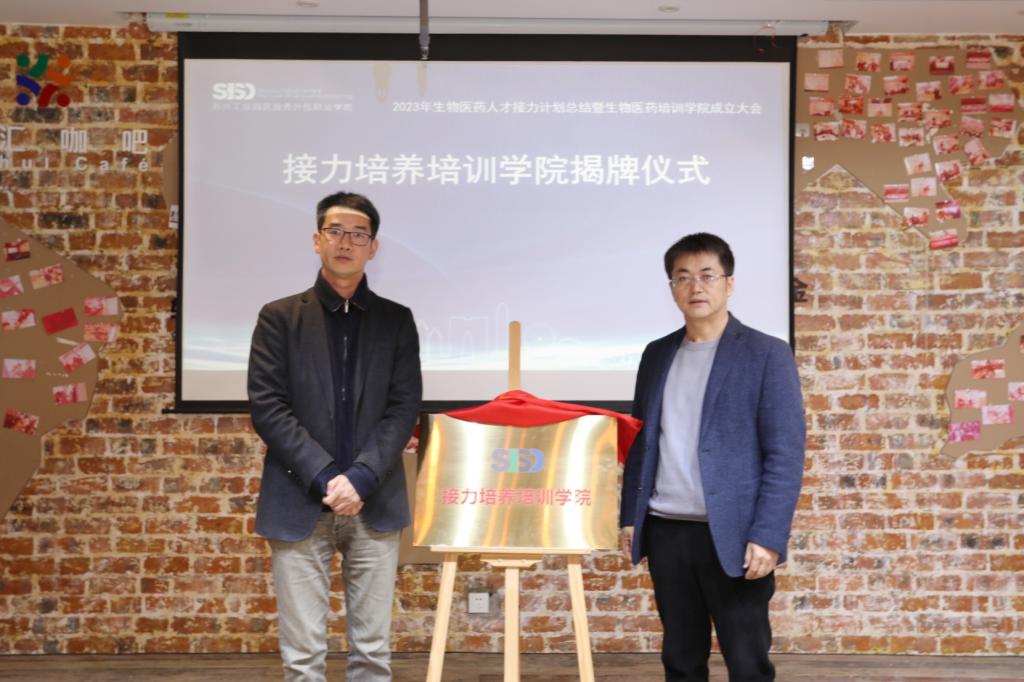 会上,严世清、陈曚曚共同为“生物医药培训学院”揭牌,冯瑞、李凯为“接力培养培训学院”揭牌。