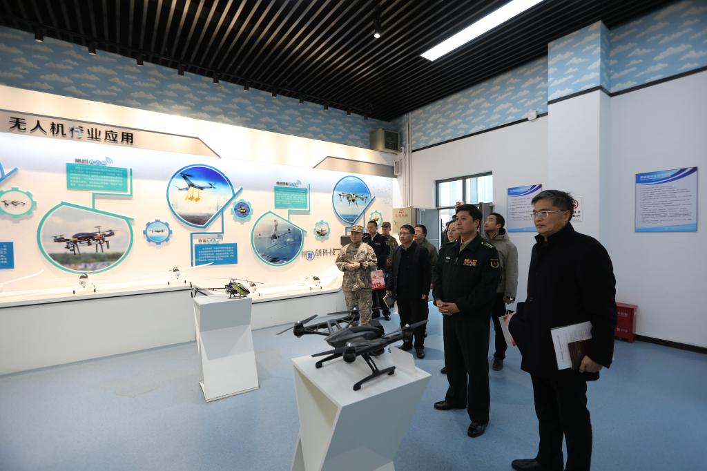 启动仪式结束后,与会嘉宾共同参观了我校智能制造学院省级现代化实训基地,检阅了学校无人机民兵分队开展训练情况。