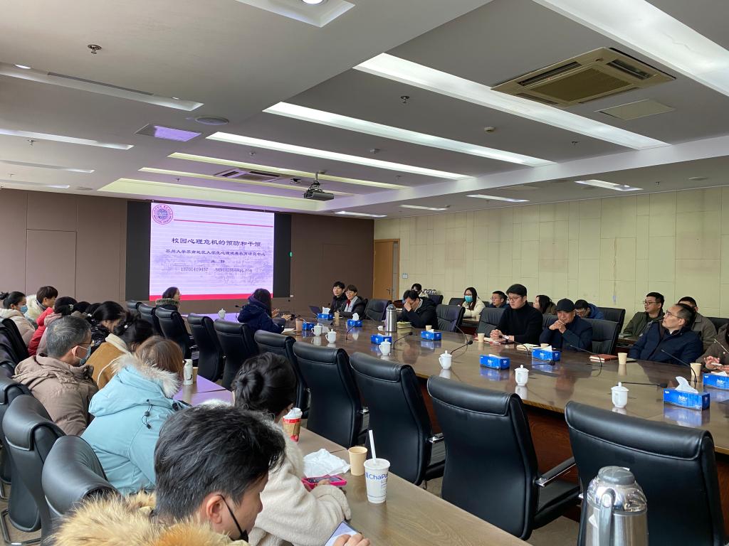 12月19日下午,我校与苏州倍磅康复医院在善治楼10楼会议室联合举办“校园心理危机预防与干预”专题讲座,讲座特邀苏州大学心理健康教育研究中心副研究员王静主讲。讲座由学工处承办,副校长顾伟国、学工处全体成员、各二级学院专职学工干部共同聆听了本次讲座。