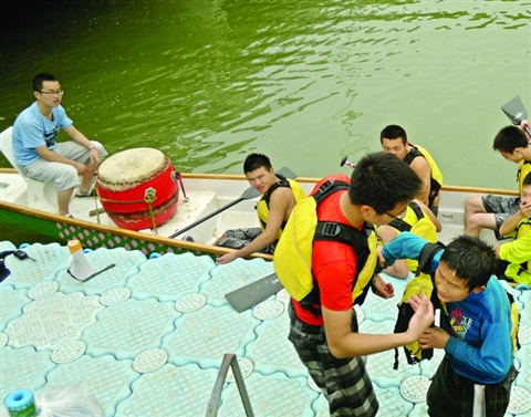 “大家不要挡水,我来掌控!”发现有车辆落水后,龙舟队队员们在学校龙舟队教练苏永会的指挥下,奋力划桨,以最快速度靠近车辆落水位置。当时,河水已经淹到车身一半的高度,车主从车窗爬出,站在车顶求救,龙舟慢慢靠近车辆尾部,车主跳到龙舟上顺利获救,化险为夷。龙舟队队员们都表示,他们只是做了应该做的事,下次遇到同样的情况也会挺身而出。