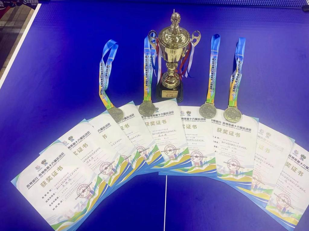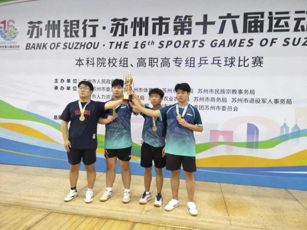 4月20日至21日,苏州市第十六届运动会学生部高职高专组乒乓球比赛在苏州工艺美术职业技术学院举行。我校七名学生组成的乒乓球队在学校体育艺术部副部长于海娟领队、教练钱婷婷带领下,团结一致、奋力拼搏,最终获得男子团体季军,女子团体第八名的好成绩。