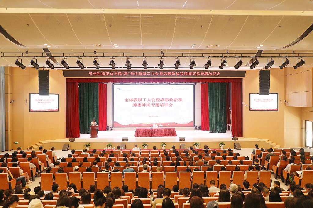 为增强全体教师为党育人、为国育才的责任感和使命感,大力弘扬教育家精神,全方位全过程强化师德养成,5月22日下午,我校在闻道楼二楼报告厅召开全体教职工大会暨思想政治和师德师风专题培训会。学校党委书记顾纯青作“大力弘扬教育家精神,筑牢师德师风根基,争做高素质良匠之师”专题报告。党委副书记、校长权俊良,副校长吕中起、丁志卫、顾伟国、冯瑞、强晏红及全体教职工参会。会议由党委办公室主任冯恒莉主持。
