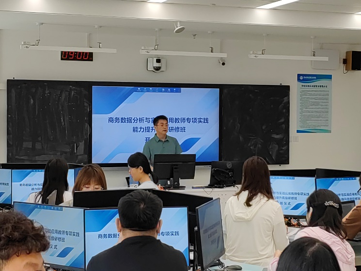 开班仪式由宋翠玲主持。冯瑞在开班讲话中表示,在数字经济融合发展的背景下,对标新产业、新业态、新模式下商务数据分析领域的新要求,培养高素质技术技能型商务数据分析与应用“双师型”教师,具有非常重要的现实意义。他希望本次培训交流机会能够为省内外兄弟院校的教师提供专业发展和课程建设的交流和学习平台,进一步强化教师的专业技能、提升专业水平。