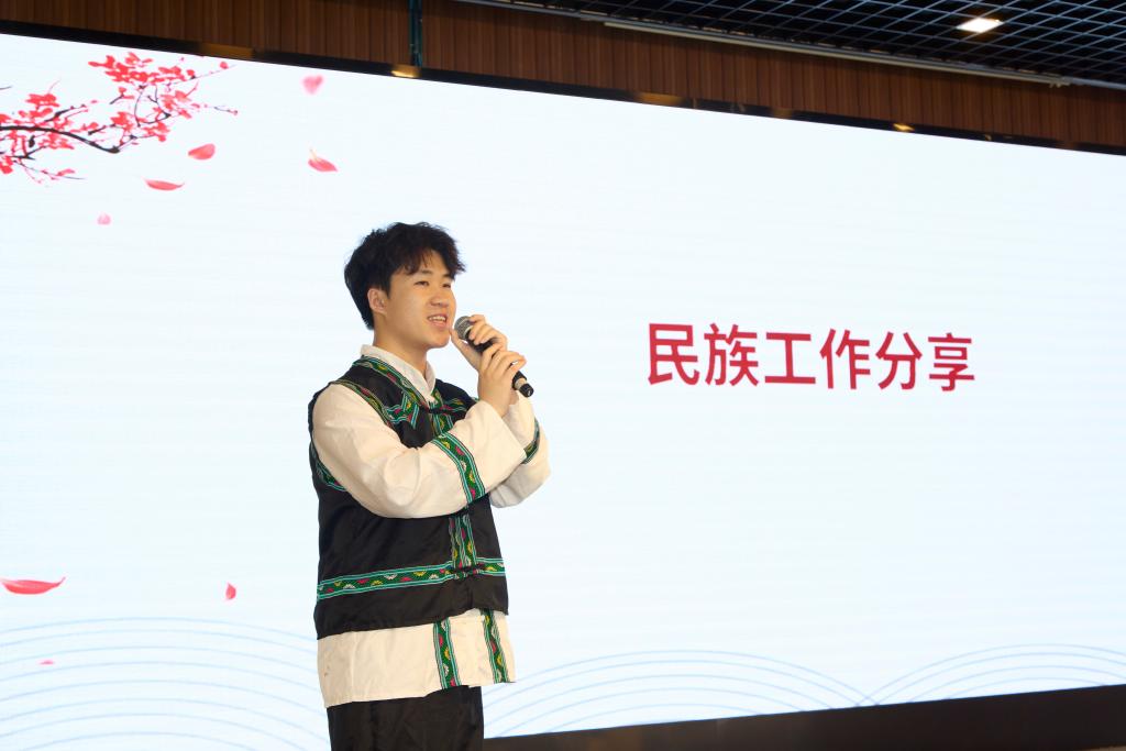 在民族工作分享会环节,我校布依族学生王加贵向大家介绍了本民族风俗文化,讲述了自己从向往苏州到就读外包学院以及与园区共成长的经历。
