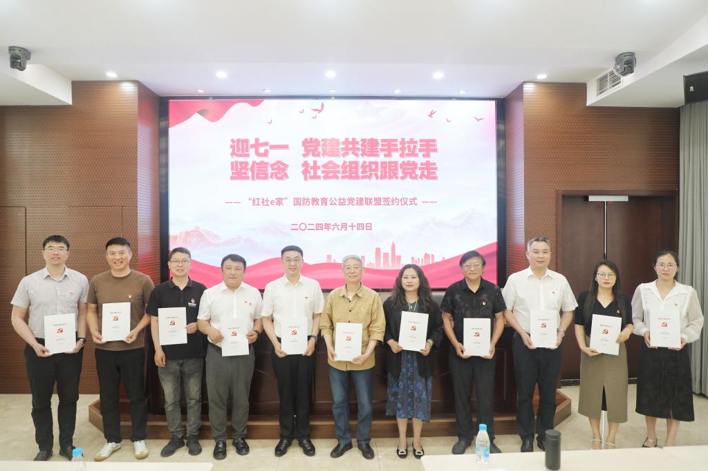 国防教育责任重,社会组织显担当。国防教育公益党建联盟,是由苏州市全民国防教育协会、江苏蓝之天律师事务所、苏州工业园区迎春花爱心联合会率先发起,我校智能管理学院、苏州驴先生文明实践志愿服务总队、苏州金螳螂公益慈善基金会、苏州陈霞爱心慈善基金会、苏州市汀斯社工师事务所、苏州博慧教育发展基金会、苏州市姑苏区蝴蝶妈妈社工服务社、苏州市美容美发行业协会等积极参与,展现了11家党组织关心支持国防、传承红色基因的信心和决心。活动现场举行了“红社e家”国防教育公益党建联盟签约仪式。