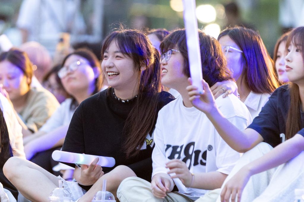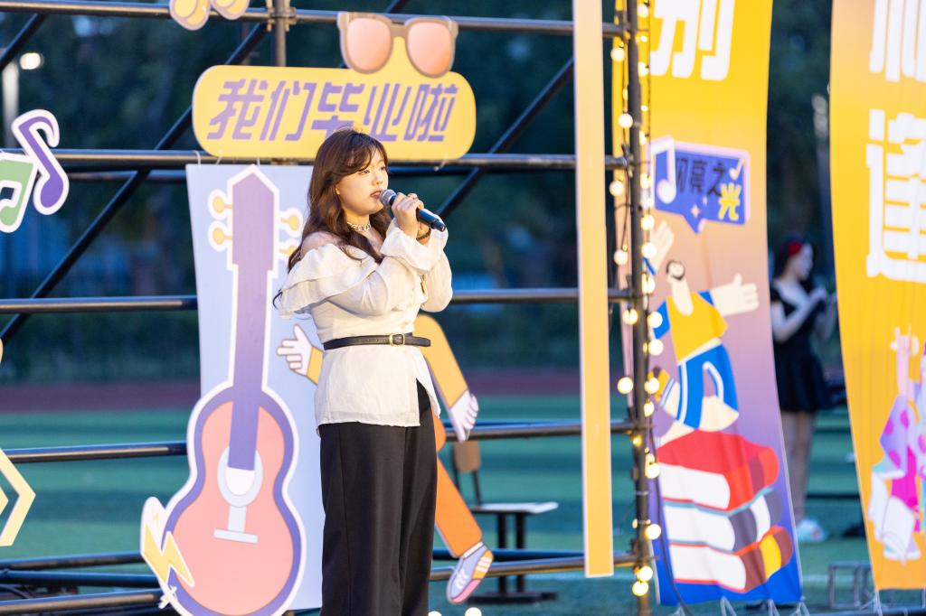 灯光璀璨,乐符交织,我校学子满怀热爱,共赴一场青春之约。音乐节在在氛围感十足的热场歌曲中拉开帷幕,随后啦啦操等20组节目一一精彩呈现。本次音乐节邀请校园十佳歌手、大学生艺术团、啦啦操团队等进行演出,充分展示了我校青年的风采和学校的美育成果,引领毕业生在沉浸式、互动式的活动体验中感受校园青春氛围。音符律动,荧光挥舞,现场笑声和欢呼声此起彼伏,迎来了一波又一波的高潮。