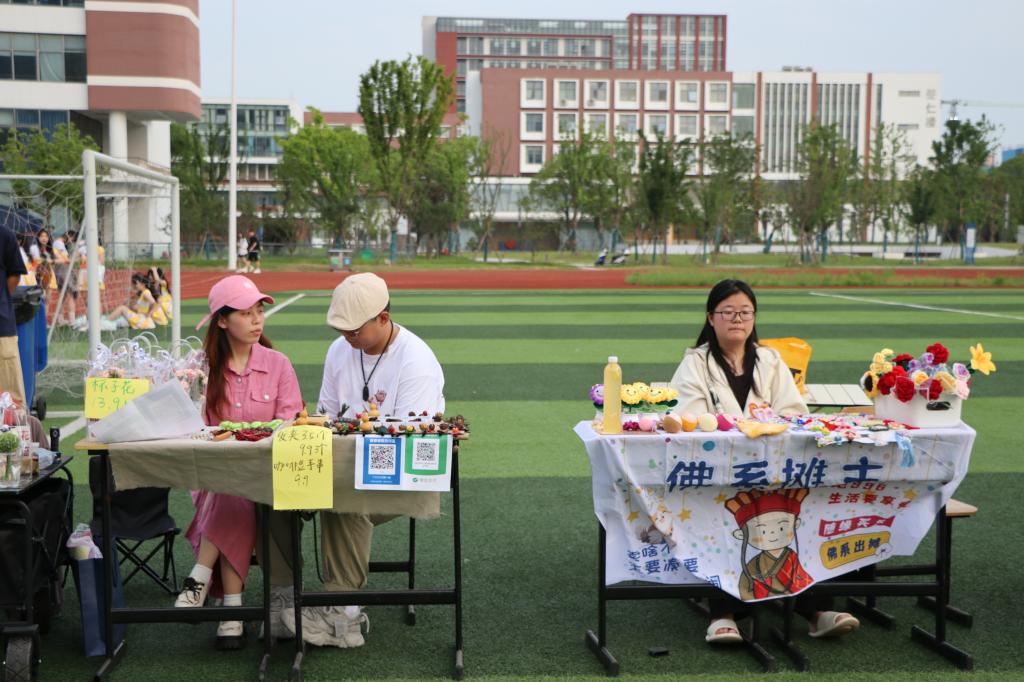 与此同时,操场边还设有“留夏青春”毕业市集,摊位琳琅满目,包括毕业生闲置旧物、毕业花束、手工制品等。市集的热闹氛围与音乐会的激情演出相辅相成,为整个活动增添了色彩和活力。