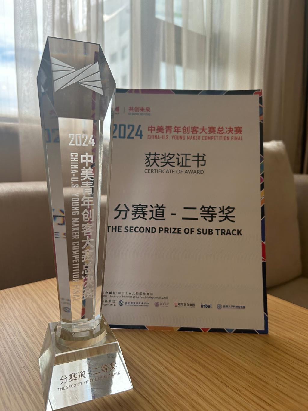 8月10日至12日,由教育部主办的中美两国青年交流的最高级别创客赛事——2024中美青年创客大赛总决赛在北京中华世纪坛举办。由我校智能管理学院陶文寅老师指导、智能232徐樊等5名同学负责的参赛项目《孤独症数字诊疗系统》斩获分赛道全国二等奖。