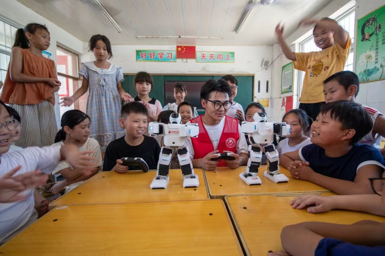 “老师你不要走”“朱珠老师,别哭”……为期一个多月的暑期支教活动在孩子们依依惜别的童声稚语中温情落幕。7月5日至8月10日,我校2024年“为爱行动”支教项目团队21名师生分别前往河南睢县白庙乡郭店小学、贵州松桃苗族自治县十五完小及河南睢县凤城街道阮楼小学3所学校开展暑期支教活动。支教团队为597名乡村孩子带来了无人机、机器人等49门丰富多彩的暑期课程,牵头举办2次支教公益论坛,用实际行动彰显了我校青年志愿者的责任与担当。