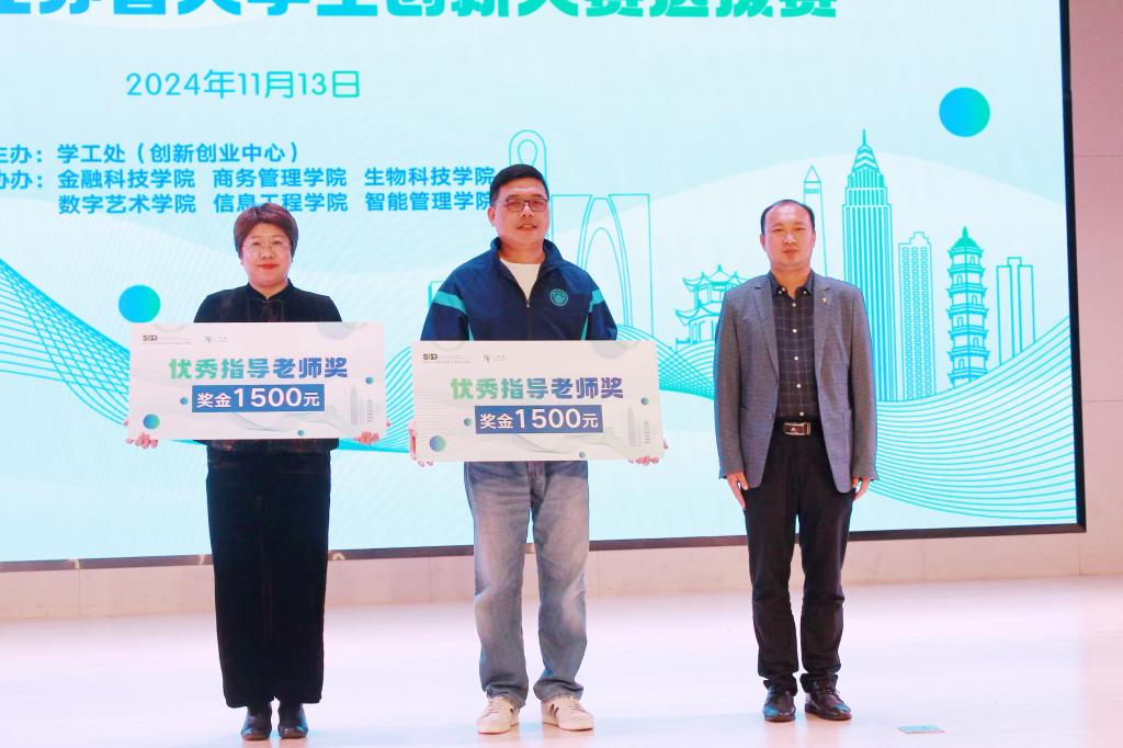 颁奖典礼上,丁志卫为最佳组织奖获得单位数字艺术学院颁发证书。武红阵为大赛优秀指导教师获得者任小芳、周中元颁发证书。陈永花为创业组一等奖获奖团队颁奖,王艳为创意组一等奖获奖团队颁奖。