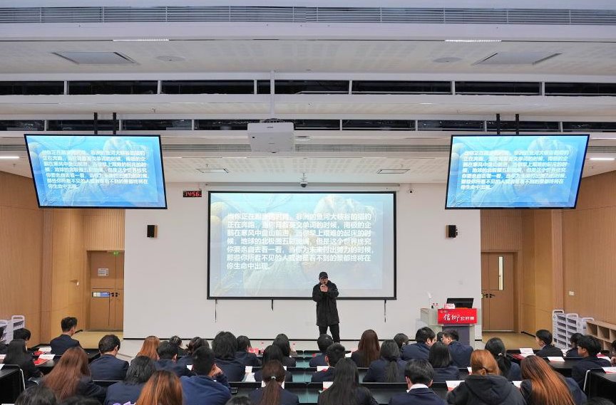 活动在青稞宣讲团饱含深情的朗诵声中拉开序幕。随后,王子以自身成长的轨迹为脉络,深情讲述了自己从海外留学归来,秉持技能报国的坚定信念,经历从迷茫探索到坚定前行、从平凡起步到卓越蜕变的精彩历程。他现场给同学们分享了三种重要的思维:虫的思维注重细节,鸟的思维全局在握,鱼的思维则能够跳脱环境的束缚。这三种思维的融合,让人在有限的能力中也能获得全新的视角和看法。