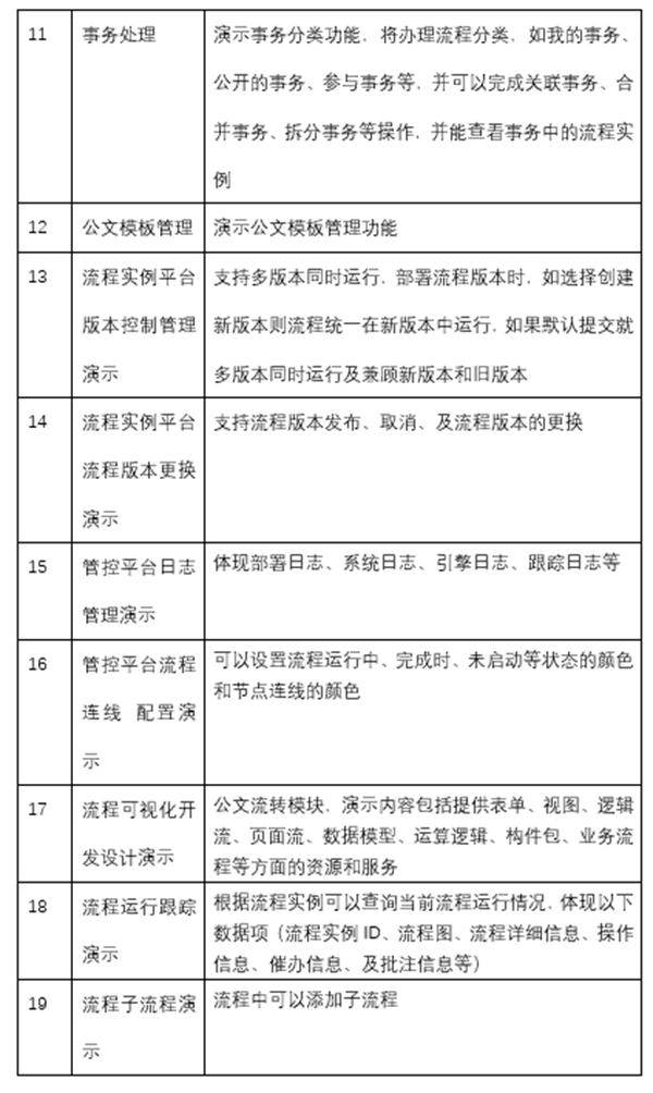流程平台须提供完整的流程定义、流程运行、流程监控和流程干预的完整接口。流程平台须支持与业务应用的灵活集成,支持HTTP、 Web service等接入方式,实现流程数据与业务数据的联合查询和管理业务关键数据的跟踪与管理。