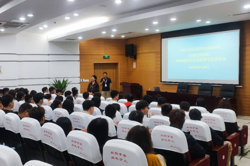 卢晨在为新生介绍学校发展历程中表示,短短14年的办学历史,学校实现了质的飞跃,获批江苏省高水平高职学校建设培育单位,走在了省内高职院校的前列。生物科技学院紧密对接苏州工业园区生物医药产业,经过10年的建设和发展,在省内生物医药相关专业中处于领先地位。