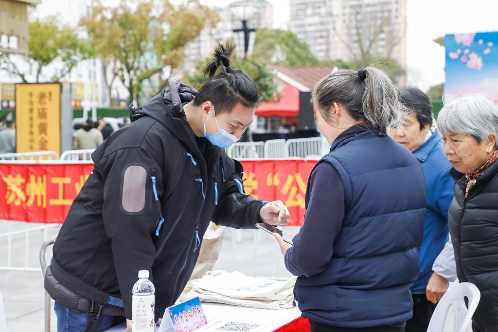 在活动现场,园区开放大学多位老师积极宣传园区终身教育平台,有序指导居民关注、注册、登陆平台,演示学习流程与方法,提升平台的知名度与覆盖面,让强大的平台资源真正助力居民终身成长。为更好的服务社区居民,部分志愿老师放弃休息时间,来到活动现场为附近居民提供包括家庭教育咨询、手工缝补、时尚美妆、无人机展示在内的公益活动,获得了附近居民的热烈欢迎和一致好评。