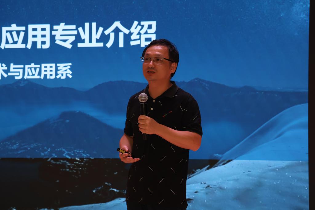 大数据技术与应用专业教师陆伟峰、大数据与会计专业老师杨娟娟、金融服务与管理专业主任朱辉、金融科技应用专业主任黎纪东分别就本专业建设情况做了详细宣讲。