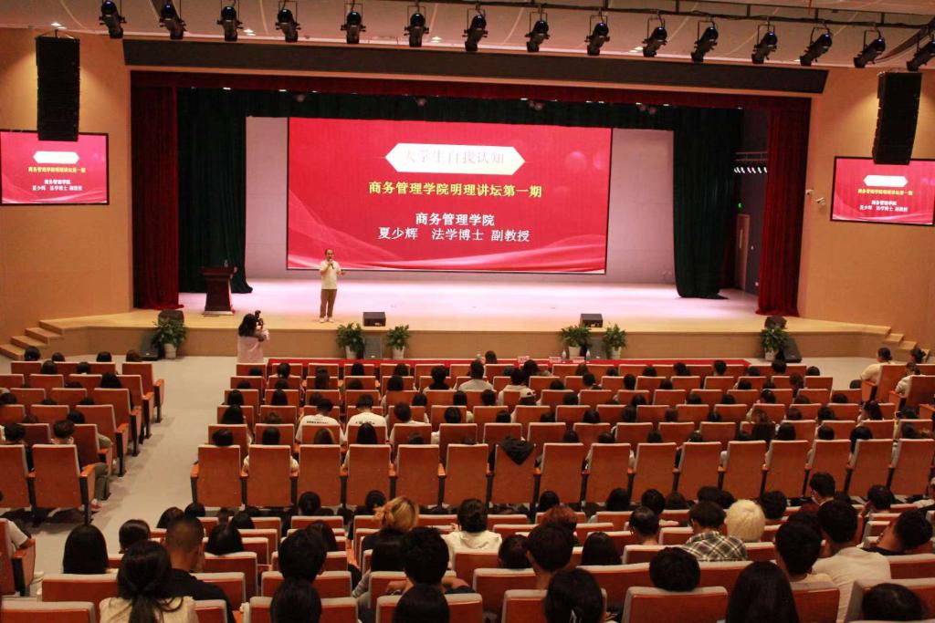 活动现场,夏少辉以“大学生自我认知”为主题为全体新生讲授开学第一课,本次讲坛也是商务管理学院明理讲坛第一讲。他结合自身心路历程,用生动的语言、详实的案例,为同学们带来了别样的开学第一课。他期望每个人都应该认识到自己的价值,明白读书的意义,主动去挖掘自己的潜力,提高自己的能力认知、价值认知、生活认知和文化认知,避免自我否定、自我胆怯。他寄语每一位同学都可以做一个书生意气、挥斥方遒、指点江山、激扬文字的新时代新青年。他的生动阐述让同学们认识到了努力的重要性,激励同学们在求知与成长的道路上树立更加明确的人生目标,去创造自己的人生价值,实现人生理想。