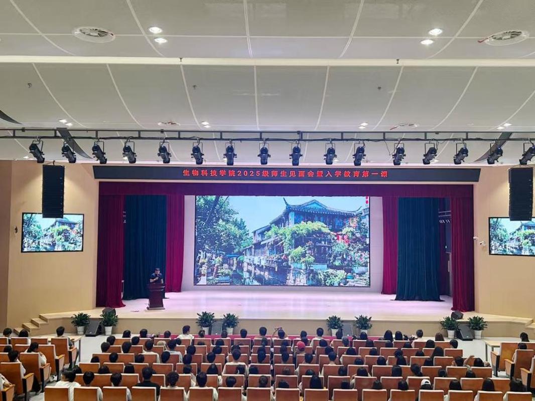 为帮助 2025 级新生尽快适应大学生活、明确学业发展方向、增强专业认同感,9 月 26 日,生物科技学院在闻道楼二楼报告厅举办了 2025 级新生见面会暨入学教育活动。生物科技学院院长李瑞丽、副院长梅啸,各专业主任、教师及辅导员参加了本次活动,会议由学院党支部书记、副院长卢晨主持。