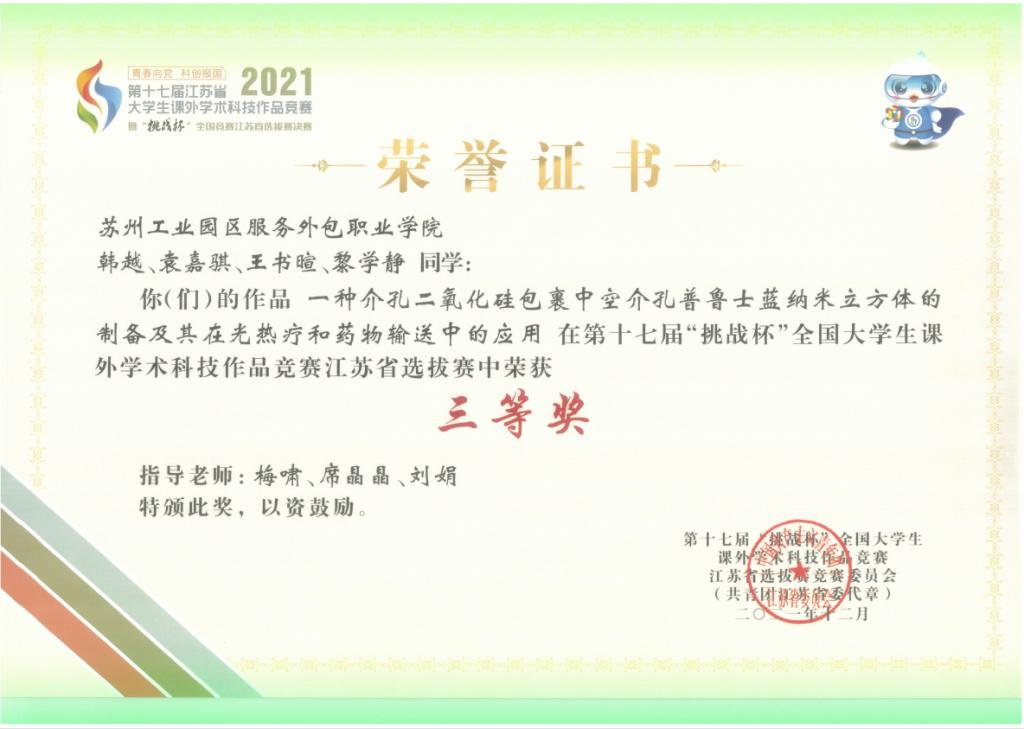 下一条:2021年江苏省职业院校教学大赛(高职组)中,获生物化工、轻工纺织、食品药品与粮食大类组别一等奖