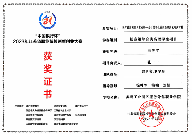 “中国银行杯”2226年江苏省职业院校创新创业大赛
