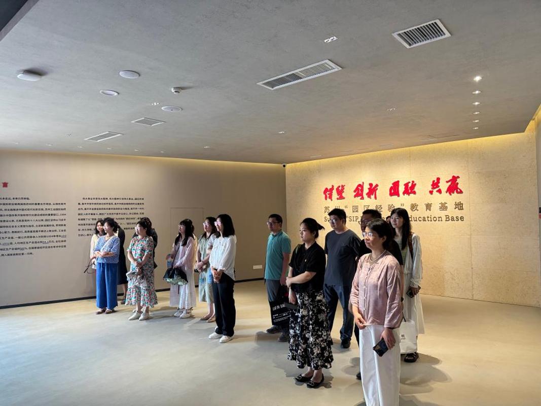 在苏州金鸡湖北岸,坐落着一幢秀气雅致的白色两层小楼——这里是苏州工业园区管委会第一处办公旧址,是园区发展的起锚地,也是苏州三大法宝之一“园区经验”的肇始,被园区人亲切地称为“小白楼”。党员们在讲解员的带领下,通过图片、视频、实物等的展示,认真回顾了苏州工业园区30年开发建设历程,学习感悟园区广大党员干部改革创新、开放包容、敢为人先、追求卓越的奋斗精神。青年党员教师胡海艳在展台前感叹:园区一张蓝图绘到底的战略定力启示我们,科研攻坚既要敢闯“无人区”,也要善建“协作链”。