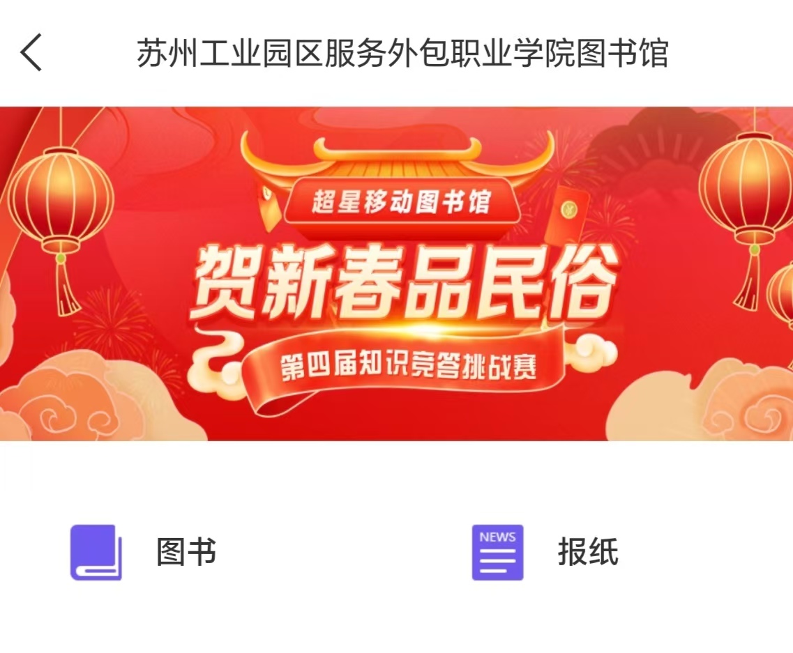 读者可通过超星移动图书馆APP、超星移动图书馆小程序、超星读书小程序,进入“贺新春·品民俗”知识竞答挑战赛专属页面参与答题。