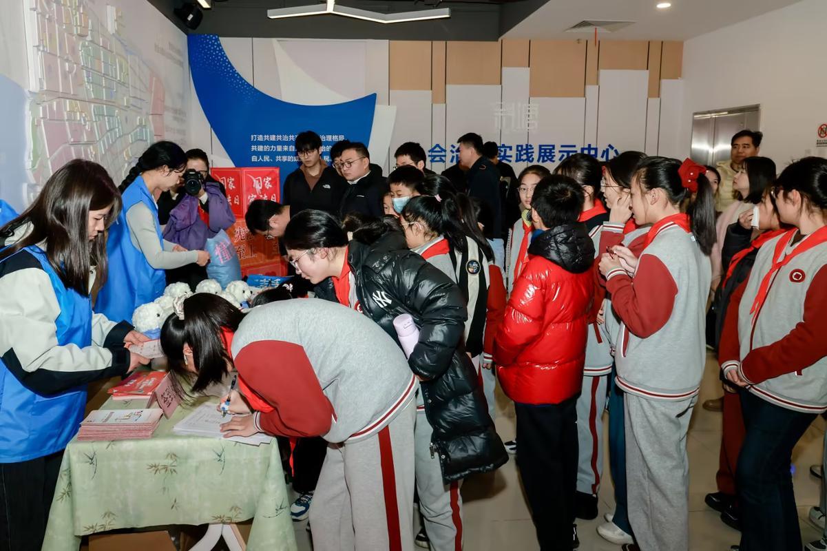 活动现场氛围热烈,身着统一服装的志愿者们精神饱满地投入服务。在宪法知识宣传区,他们结合专业特色,通过案例讲解、趣味问答等形式普及法律知识。与斜塘学校学生互动时,志愿者们以卡通漫画、法治小故事答疑解惑,播撒法治种子,现场互动融洽。