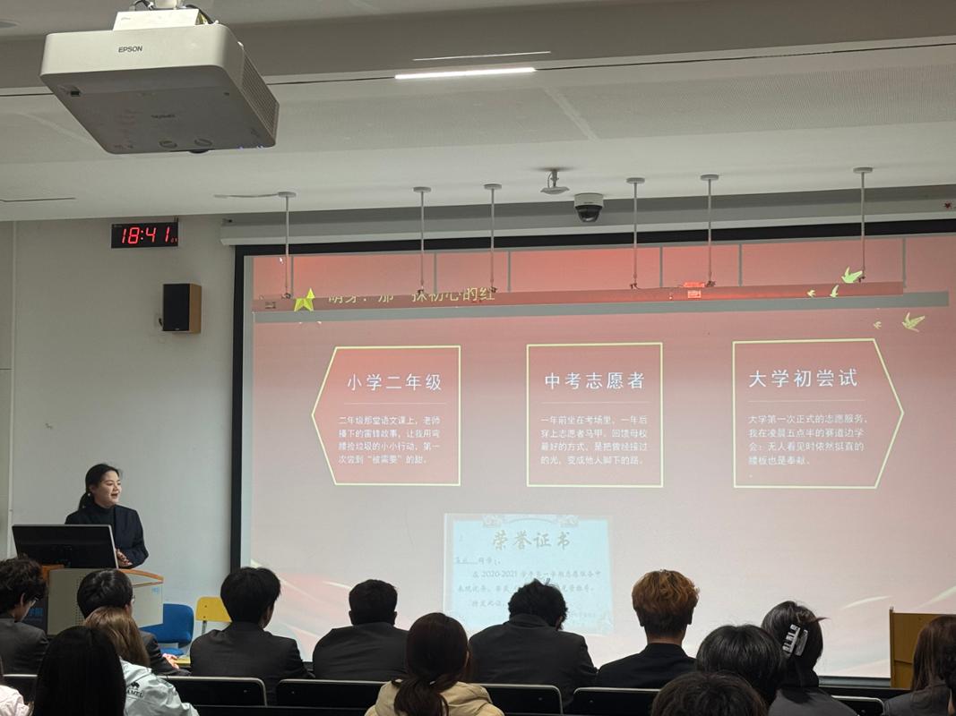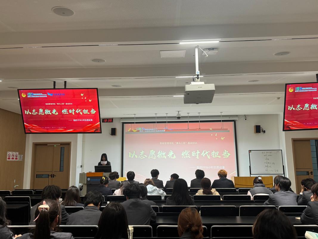 3月18日晚,智能管理学院“青马工程”基础培训班在玄同楼101教室举行“以志愿微光,燃时代担当”主题分享会,邀请学院上一届青年志愿者协会主席、智慧城市管理技术专业2023级学生董欣作经验分享。全体青马工程基础班学员共同聆听了一场关于奉献与成长的生动故事。