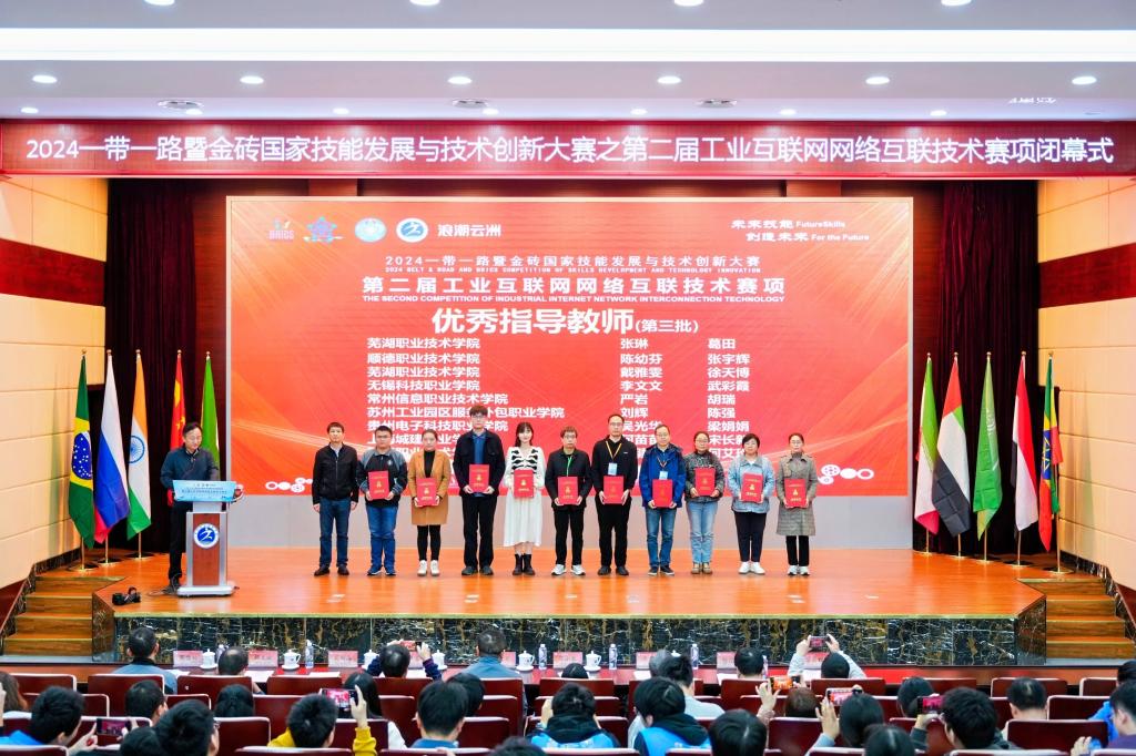 11月7日至10日,2024一带一路暨金砖国家技能发展与技术创新大赛工业互联网网络互联技术赛项全国总决赛在芜湖职业技术学院举办。此次比赛共吸引了90支参赛队伍,其中包含2支国际队参加。我校智能管理学院由陈强、刘辉老师指导的学生王梁昆、钱志强组成的团队经过激烈角逐,最终突破重围,斩获金奖。