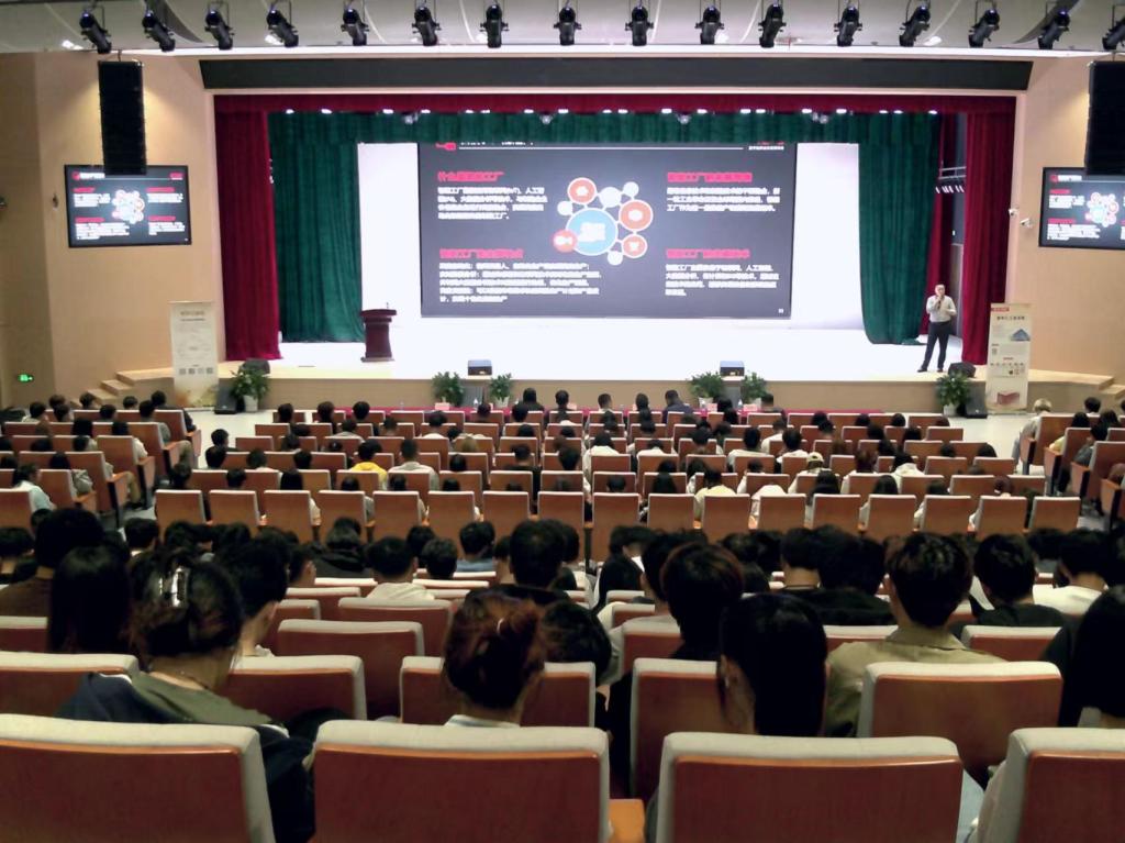 当今数字化时代,智能制造已经成为制造业转型升级的关键,智能工厂已成为工业领域发展的新趋势。为使广大学生深入了解智能工厂,10月9日,智能管理学院在闻道楼报告厅举办“智能工厂建设实践”主题讲座,本次活动也是AI工业·新华三智能制造赋能培训校园行活动之一。参加此次活动的有中国工业互联网研究院标准化技术研究所副所长朱浩、研究员唐墨,新华三工业互联网有限公司首席执行官刘淑英、教育发展中心主任张宇楠、智能工厂专家王永生,我校智能管理学院院长杜梓平,副院长夏燕、副院长陈强,以及智能管理学院2023级、2024级近500名学生。