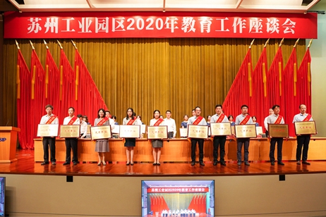 9月8日下午,苏州工业园区召开2020年教育工作座谈会,回顾总结教育事业取得的成绩,表彰奖励一批在教育战线上做出突出贡献的先进集体和个人。会上,我校荣获“苏州工业园区2019-2020年度教育工作先进单位”,党委副书记、副校长丁志卫代表学校上台领奖。此次教育工作座谈会,市委常委、园区党工委书记吴庆文出席并讲话,园区党工委副书记、管委会主任丁立新作教育工作报告,园区党工委副书记、管委会副主任、组织部部长林小明宣读了《园区党工委、管委会关于表彰苏州工业园区2019—2020年度“教育工作先进单位”、“优秀教育工作者”的决定》。