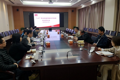 为了落实国务院颁布的《国家职业教育改革实施方案》精神,教育部、国家发改委、财政部、市场监管总局联合印发了《关于在院校实施“学历证书+若干职业技能等级证书”制度试点方案》。4月18日上午,教学服务中心在言子楼B416会议室会同合作交流中心及各二级学院认真学习文件精神,开展主题讨论。