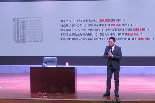 讲座邀请了国家认证生涯规划师、DISC国际认证讲师与顾问俞亮老师担任主讲嘉宾,他从 “职场中的沟通思维”、“人际沟通中的关键词”和“被验证过的成功秘诀” 三个角度鼓励大家努力培养系统思维、细节思维、沉淀思维、人脉思维。讲座过程中,同学们针对自己的困惑积极提问,俞亮给予了耐心的倾听和解答,并将“成功有多重定义,每个人都应有梦”这句话送给在场所有同学。