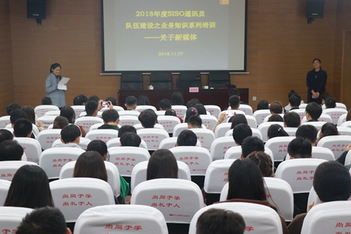 为提升师生新媒体应用技能,11月7日下午,由我校党委宣传部组织的通讯员队伍建设之业务知识系列培训在槎轩楼D104举行,培训邀请了苏州市新媒体联盟秘书长姚萍娟为师生带来了题为《新媒体时代,我们可以干点啥?》的讲座,我校党委副书记、副校长丁志卫,各部门通讯员、学校各微信公众号制作团队、各班宣传委员等100余人参加了此次培训。