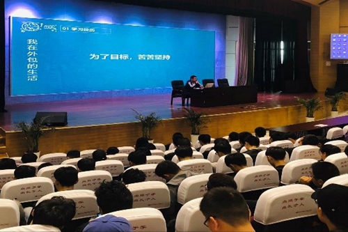 会上,陈秀元为大家介绍了往届了同学在SISO所取得的优异成绩。随后,我校13届毕业生张熙睿应邀在会上与大家分享了自己的学校经验,他从“学习经历”和“给学弟学妹的建议”这两点展开,为大家总结了自己在SISO的三年学习生活:从初入校园的懵懂无知,因只顾消遣玩乐而渐渐麻木了自我,到走出校门寻求工作岗位时,因为学历原因屡遭挫折而决定重新定位,再到后来报名专转本,通过艰苦努力终于收获了属于自己的成功。随后,张熙睿给同学们提供了一些宝贵建议:首先要明确自己的目标,其次要找准适合自己的学习方式,他希望同学们能做到以人为镜,不断鞭策激励自己,以饱满的激情投入到学习中去。