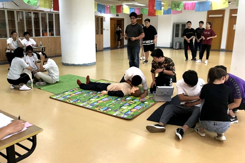 现场决赛前,来自物业161班贾银广等9名同学组成的SISO救援队带来了应急救护模拟表演,同学们专业的救护能力和训练有素的表现赢得了现场裁判和参赛队员的阵阵掌声。此次比赛分为前期培训、现场决赛两个环节,培训为期一个月,培训期间校医务室章士凤医生全程跟踪,各个比赛队伍认真筹备,积极备赛。比赛标准以省高校应急救护比赛标准设置,共分为环境观察、判断意识、判断呼吸、紧急救护、确定胸外按压部位、按压频率、按压深度、检查口腔异物、打开气道、口对口吹气、按压与吹气、打开气道评估呼吸循环、复苏后护理13个环节,要求选手在3分30秒内完成所有步骤,比赛紧促且有序。
