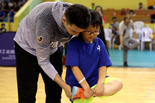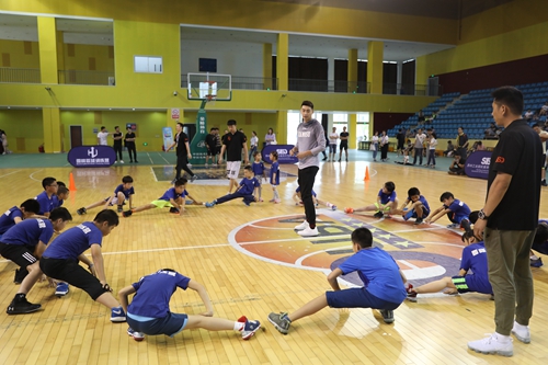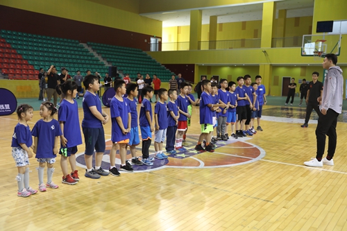 在热情的球迷互动中,大家见到了自己心中的篮球明星。现场遴选出的20位小朋友在胡指导的亲自带领下,分组进行了训练展示,并一一获得了专业性的篮球动作辅导,部分有训练基础的孩子也表现出了娴熟的运球能力。