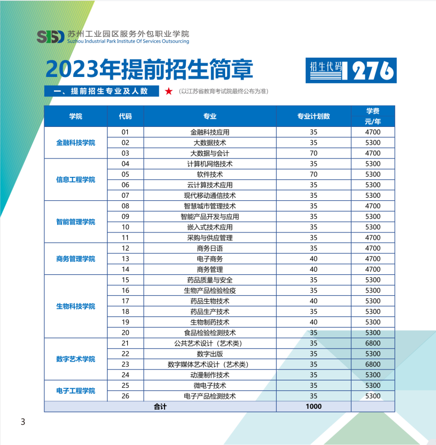 苏州工业园区服务外包职业学院2023年提前单招简章
